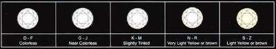 Diamonds range in color from icy winter whites to warm summer whites. Diamonds are graded on a color scale established by the Gemological Institute of America (GIA) which ranges from D (colorless) to Z.