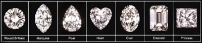 Cut also refers to shape—round, square, pear, or heart for example. Since a round diamond is symmetrical and capable of reflecting nearly all the light that enters, it is the most brilliant of all diamond shapes and follows specific proportional guidelines. Ask a jeweler to find out more about these guidelines.