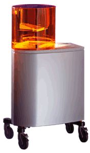 | The Perfactory® process is quite simple: The selected 3D data model will be prepared for the process in the Perfactory® specific RP-SW; the data model will be sliced and the data slices will be converted into a bitmap format necessary for the mask projection via DLPTM-Technology from Texas Instruments. Then, each layer of the object will be photopolymerized while moving up the support platform step by step (layer by layer).Perfactory® cures the build material layer by layer and not spot by spot. This makes build speed independent from part size and geometry. Perfactory® Standard has a build speed of approx. 10 to 20 mm Z-height build-up per hour. For this new approach, a DLPTM (Digital Light Processing) Technology based projection system is integrated into Perfactory®. | Two solid imagers in one for unprecedented versatility.